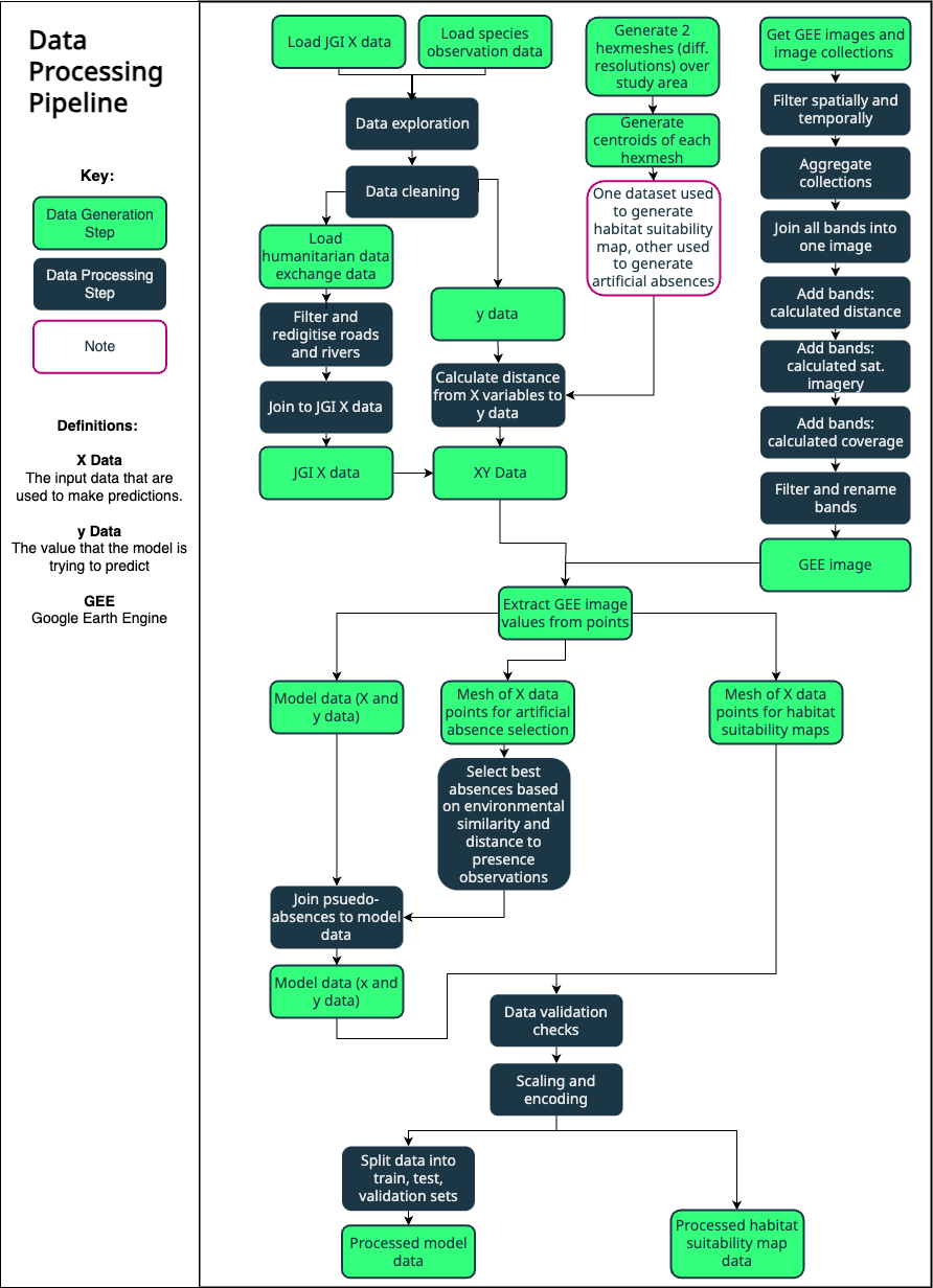 The module integrates with the Global Biodiversity Information Facility to pull species occurrence records, and can also incorporate locally stored datasets. Additional utility functions handle common preprocessing tasks such as data cleaning, joining and validation.
